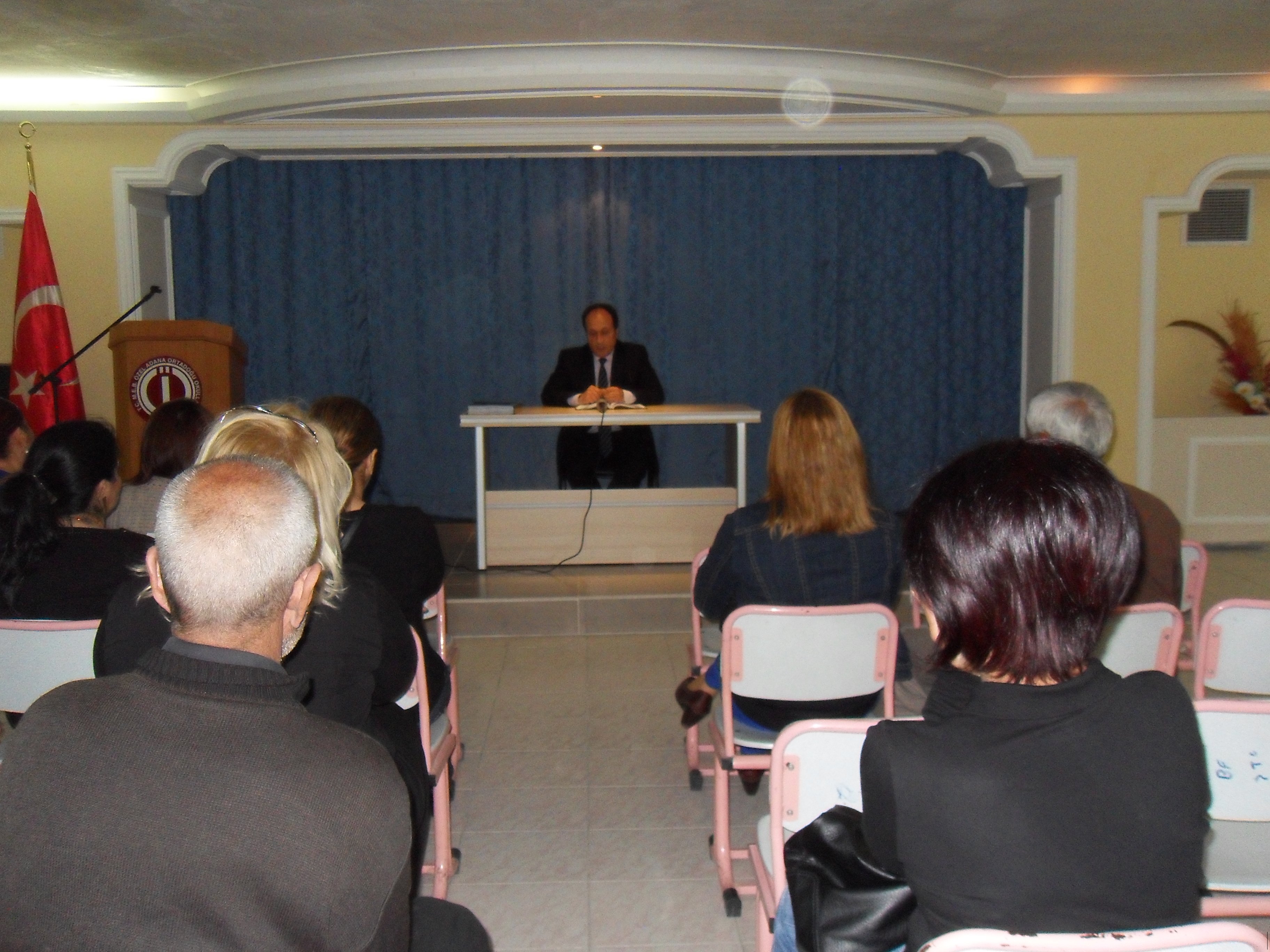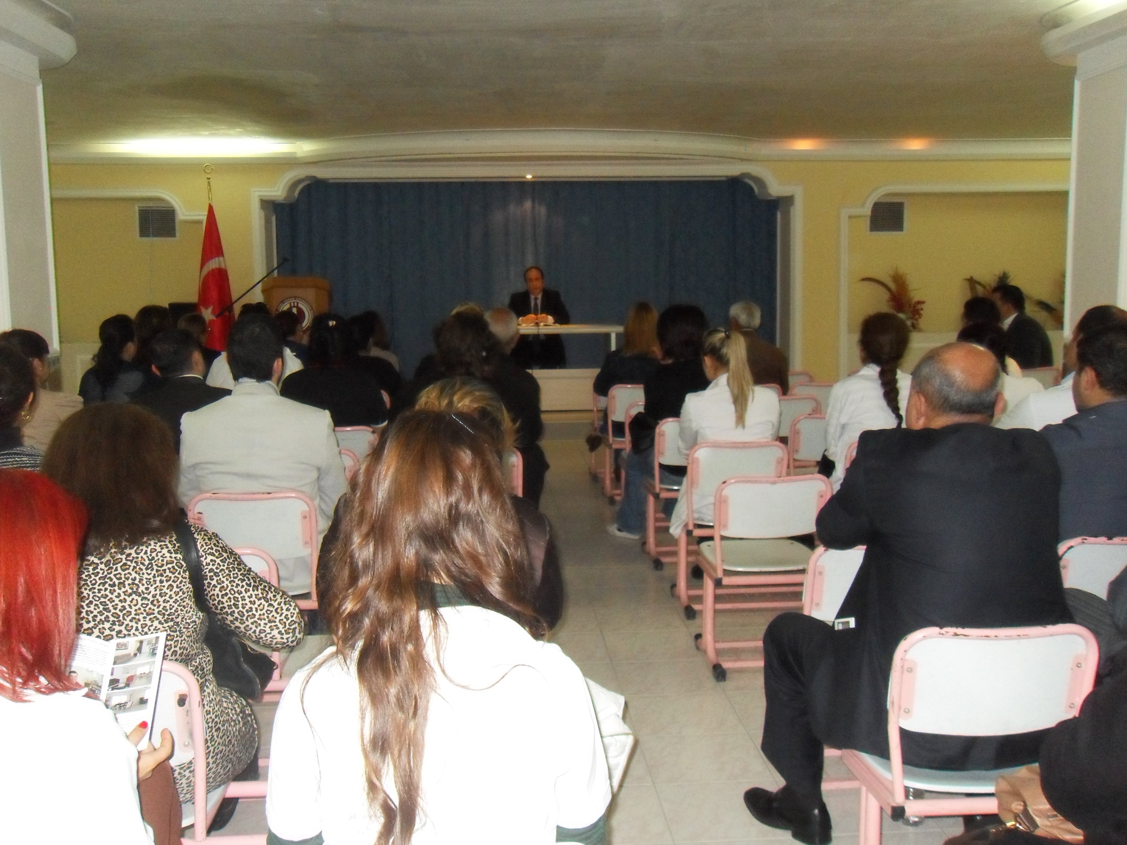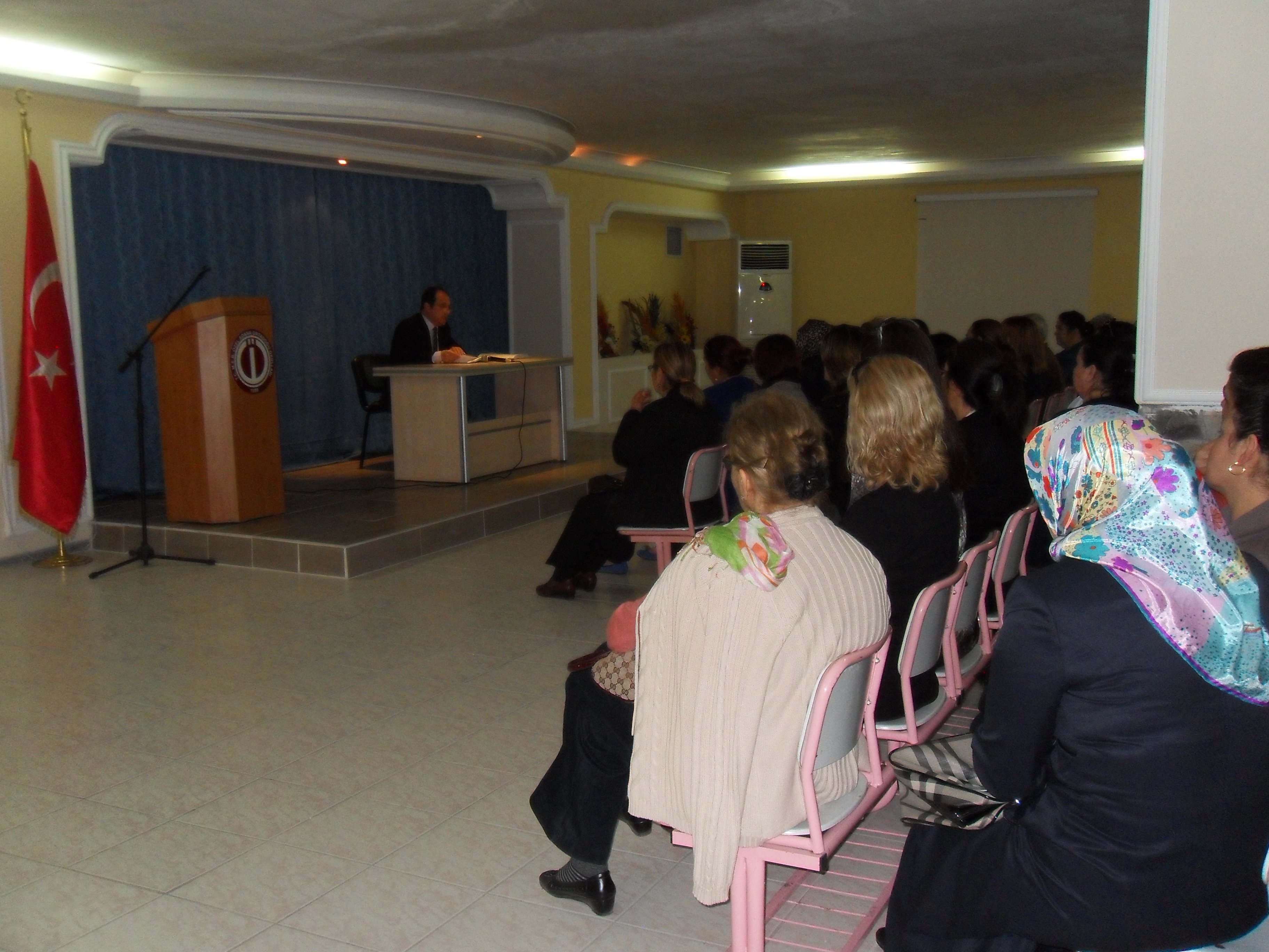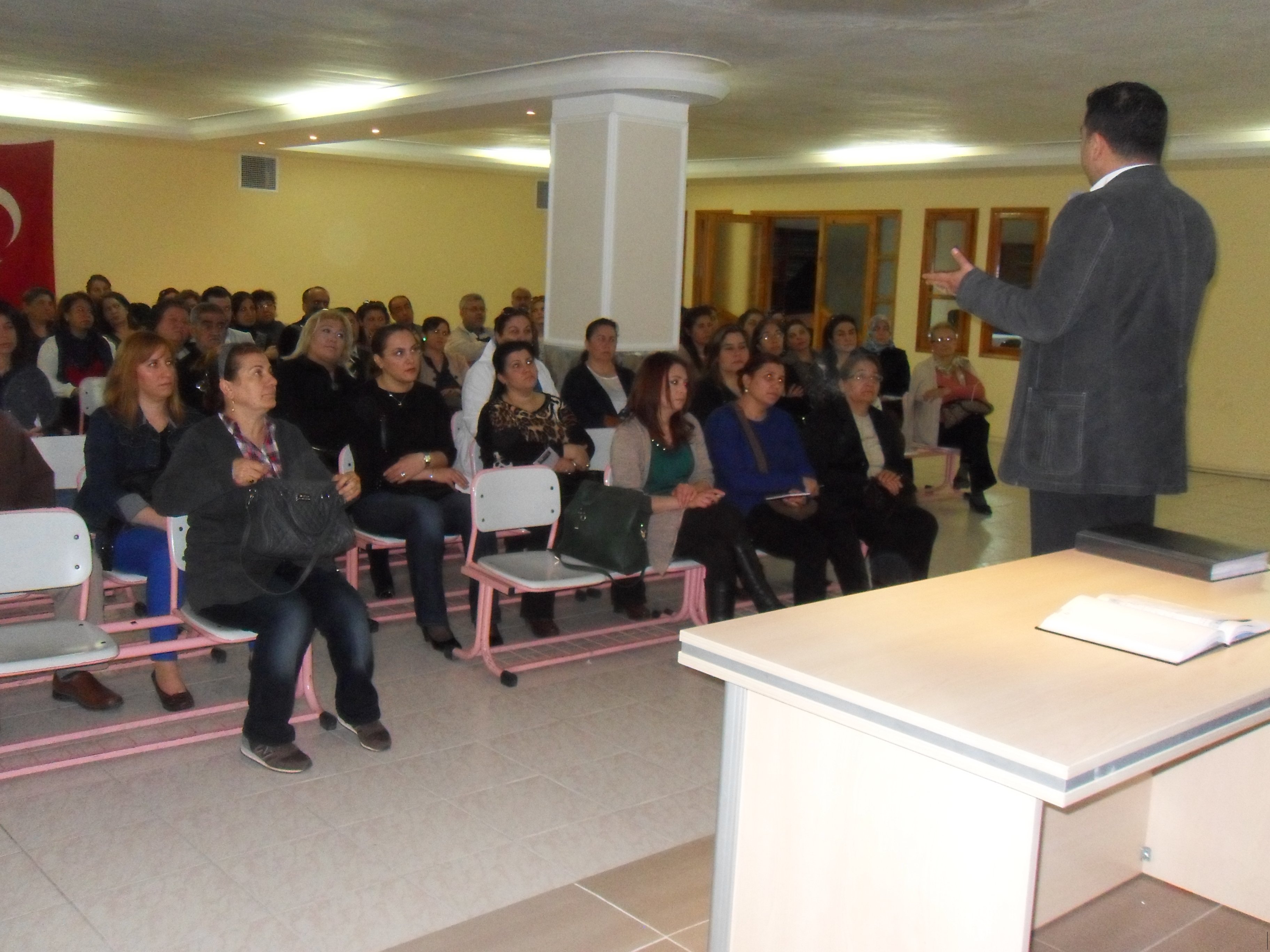 Ulu Önder Atatürk ve tüm şehitlerimiz için saygı duruşundan sonra açılış konuşması yapan okul müdürü Ö.Taşkın ALTUNBAŞ katılımın yüksek olmasından dolayı velilere teşekkür etti. Velilerden okula sadece toplantı olduğunda değil, sık sık gelmelerini okul-öğrenci-veli üçgenini bozmamalarını istedi. Denge psikiyatri merkezinden psikiyatrist-psikoterapist Dr.Levent SOYLU tarafından verilen konferans ile devam eden toplantı, sınıf öğretmenlerinin tanıtımı ve velilerin sınıflara giderek öğrencilerin ara karnesini almasıyla sona erdi.